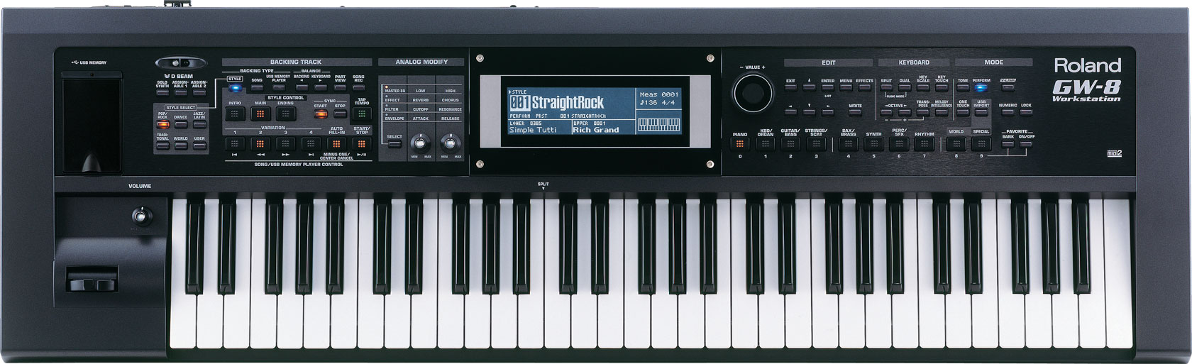 O GW-8 inaugura uma nova era dos arranjadores Roland: é o primeiro a utilizar o chip da consagrada linha FANTOM-X. Com mais de 1000 sons, o GW-8 possui um amplo arsenal de timbres para qualquer estilo musical. Com polifonia de 128 vozes e diversos recursos para acompanhamento, o GW-8 apresenta o futuro dos arranjadores Roland.
